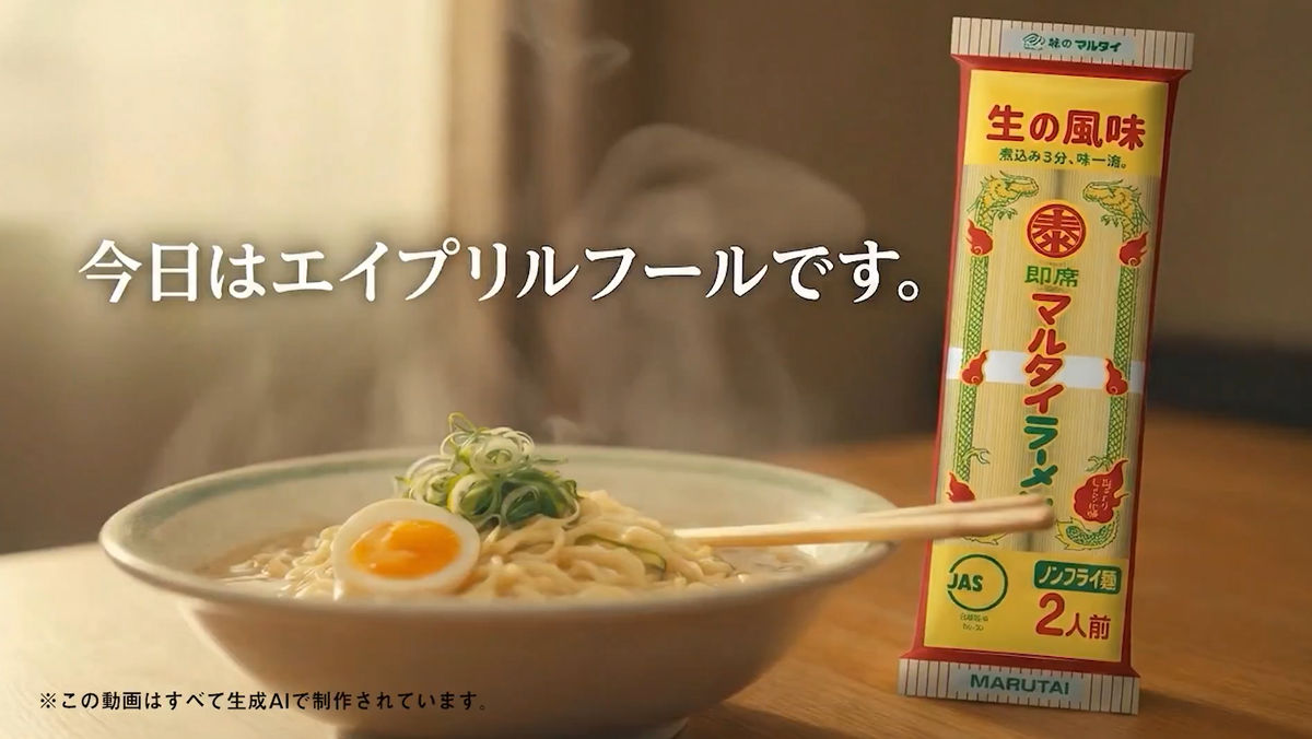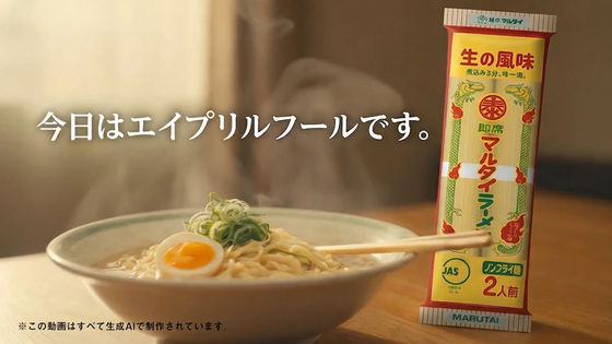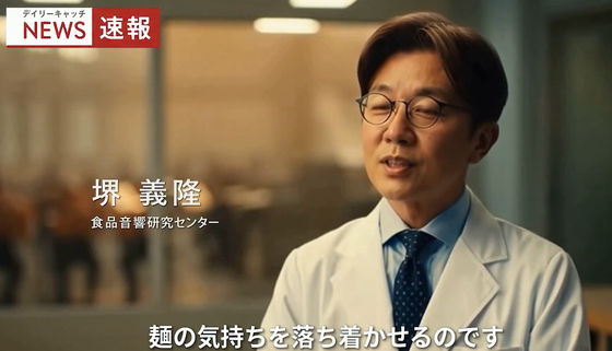 実際に試食した工場長は「麺がしっとりしている。しかもいつもよりうまい。これは世紀の大発見だ!」とコメントしています。なお、このニュース映像は全て生成AIで作られているそうです。