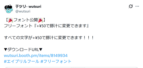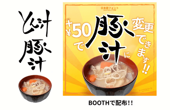 フリーフォント「+¥50で豚汁に変更できます」が公開されました。
