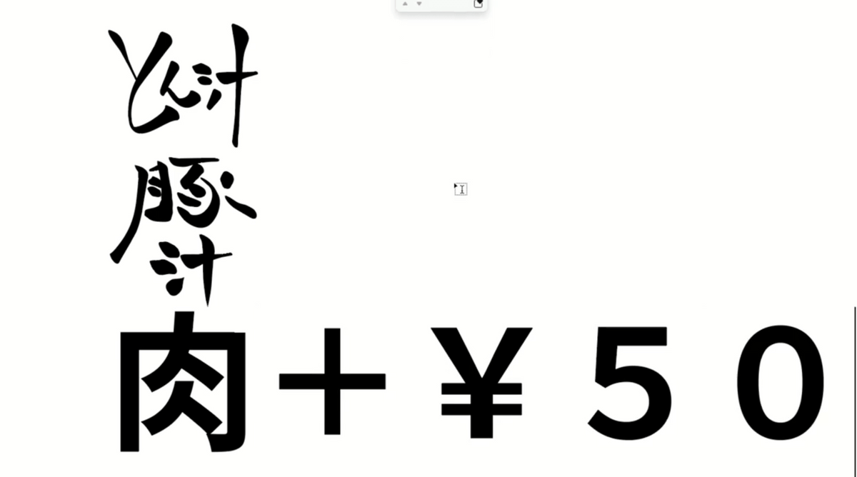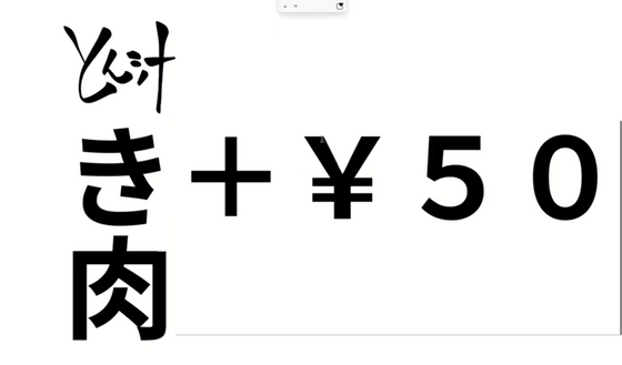 ◆「+¥50で豚汁に変更できます」フォントが登場