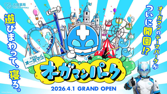 福岡県を中心に展開する大賀薬局のイメージキャラクターである「薬剤戦師オーガマン」が、テーマパーク「オーガマンパーク」のグランドオープンを告知しました。キャッチコピーは薬剤戦師オーガマンの決め台詞である「薬飲んで、寝ろ」にちなんだ、「遊びまわって、寝ろ」となっています。