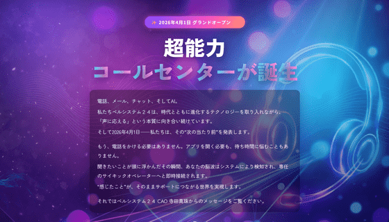 コールセンター大手のベルシステム24が、「超能力コールセンター」を発表しました。