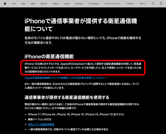 iPhoneで通信事業者が提供する衛星通信機能について - Apple サポート (日本)