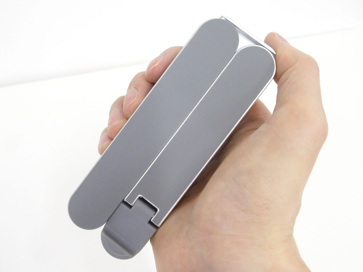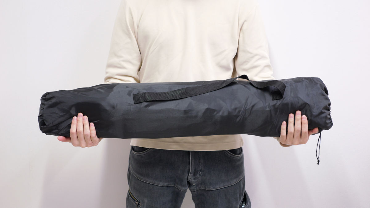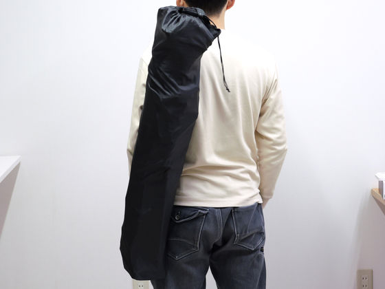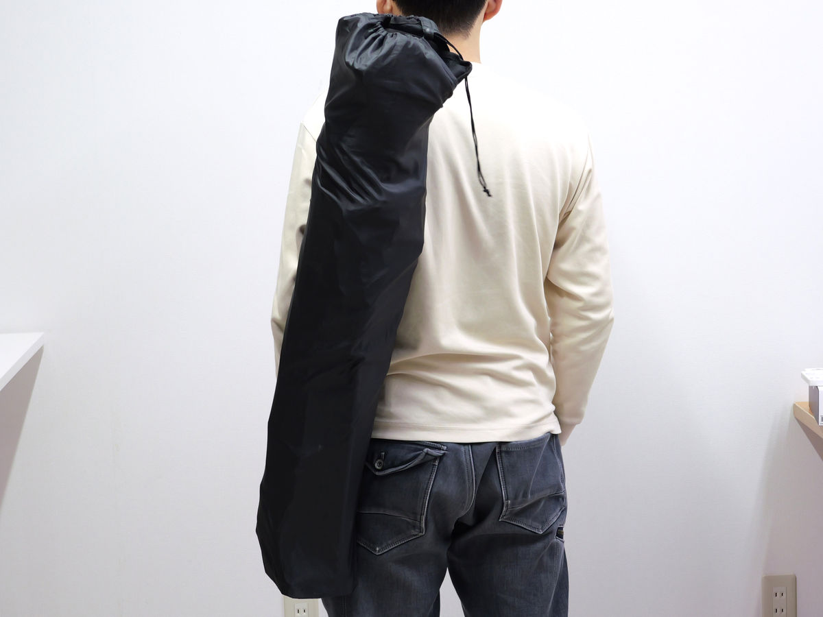 さらにコンパクトに折りたたんで持ち運べるのが特徴。専用のケースに入れるとこんな感じです。