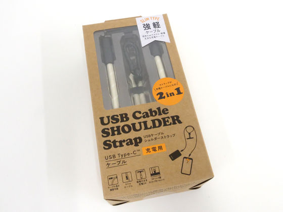 ストラップとUSB Type-Cケーブルが一体になった製品です。エレコムからホワイトとベージュの2色を提供してもらいました。以下はホワイトです。