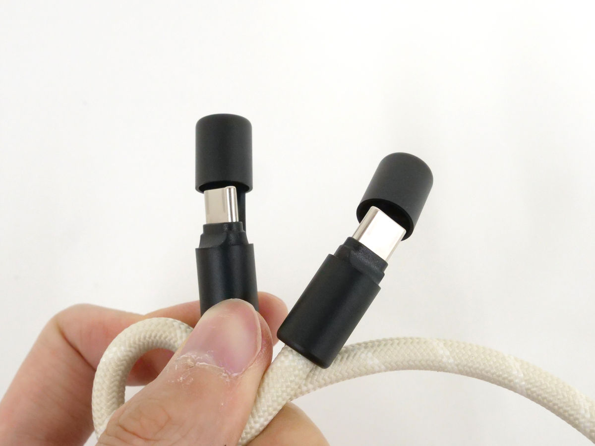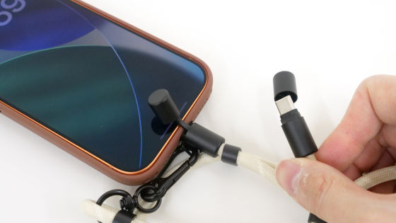 ストラップ先端のキャップを外せば、内部に埋め込まれたUSB Type-Cケーブルが顔を出します。