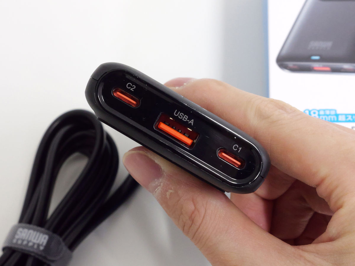 横の方にUSB Type-CポートとUSB Type-Aポートがあります。USB Type-Cポートの出力は最大65Wです。