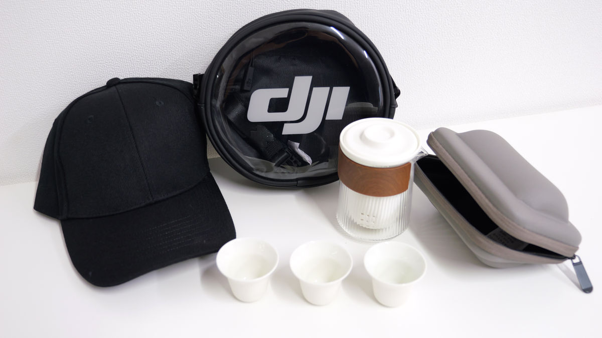 DJIから提供してもらったグッズです。「中国の本社で販売している品」とのことです。