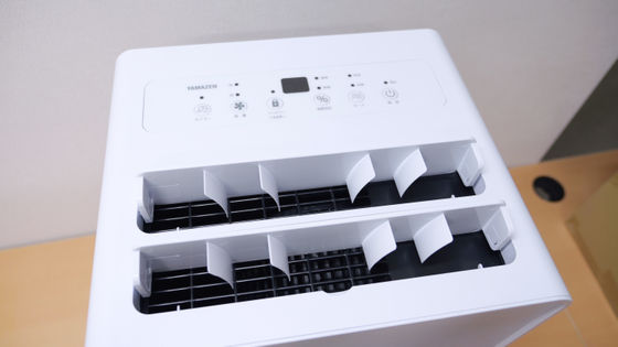4.5Lのタンクを備えたコンプレッサー式の除湿機です。山善から提供してもらいました。