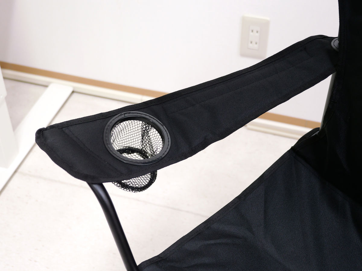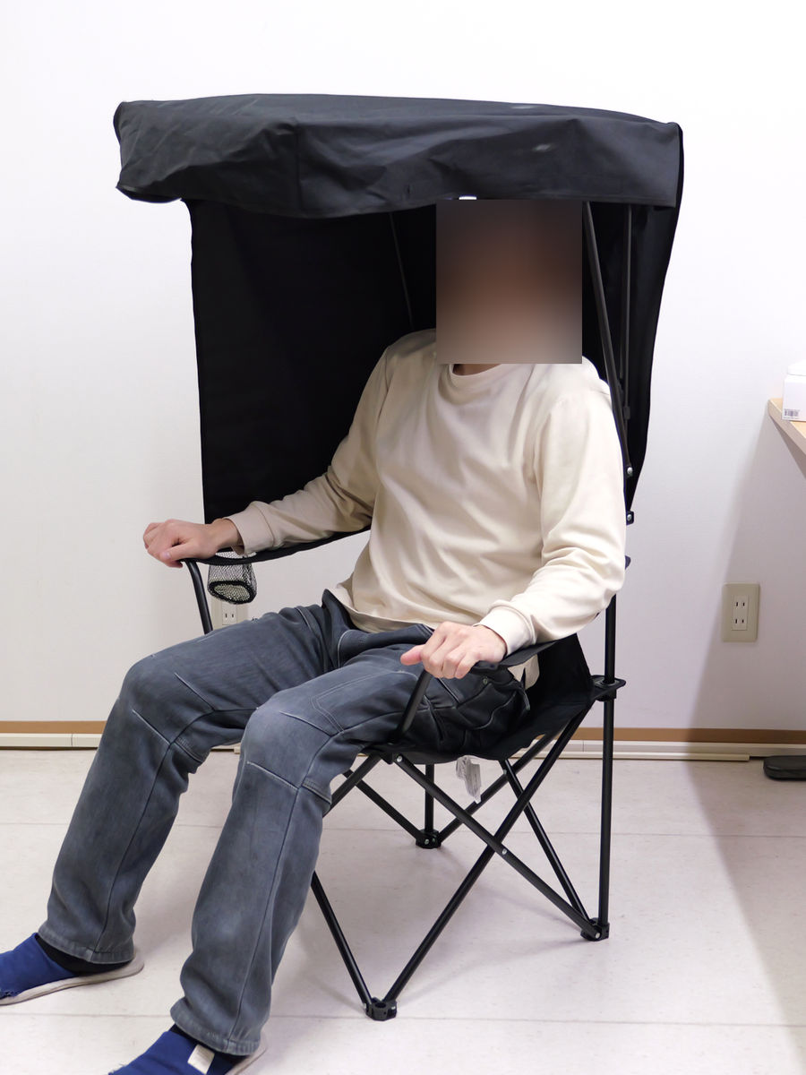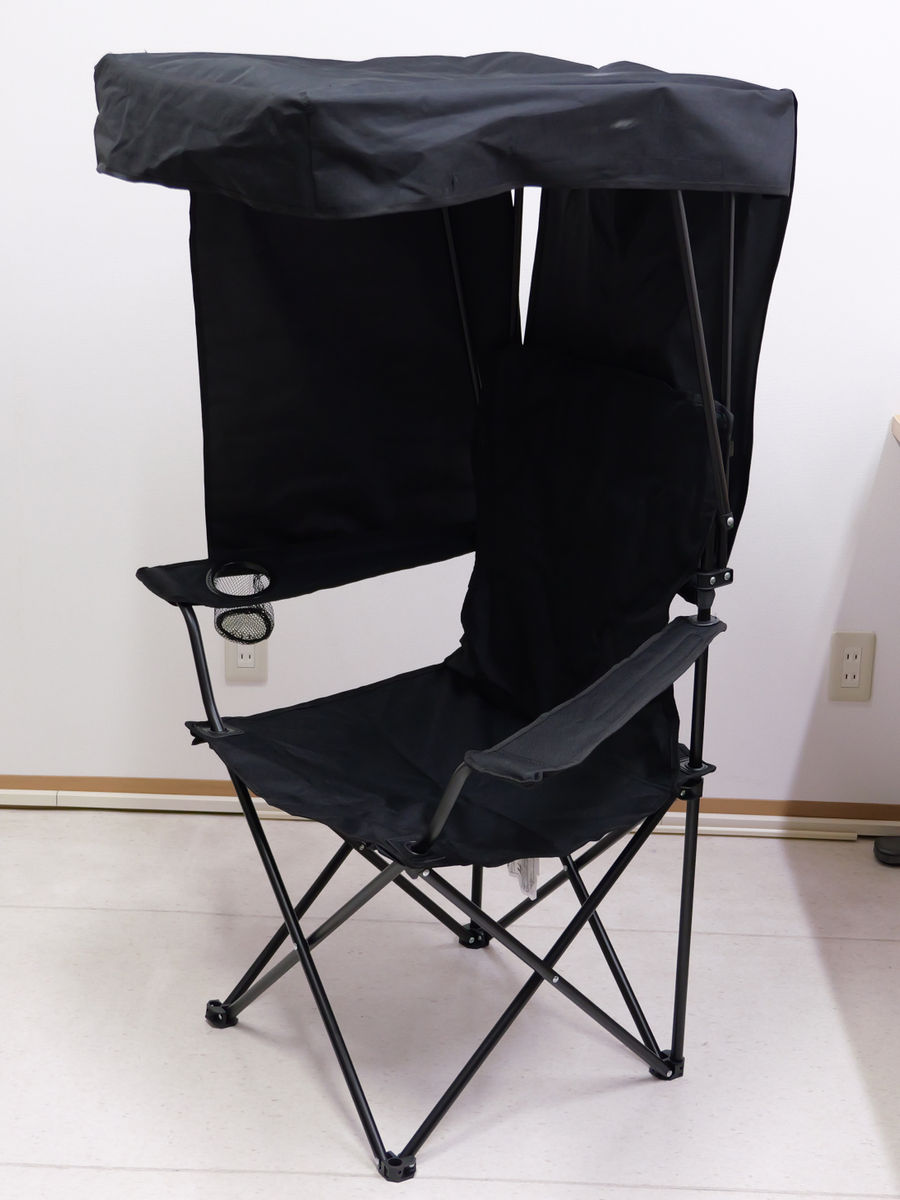 天面と側面に「ひさし」が付いたチェアです。山善から提供してもらいました。