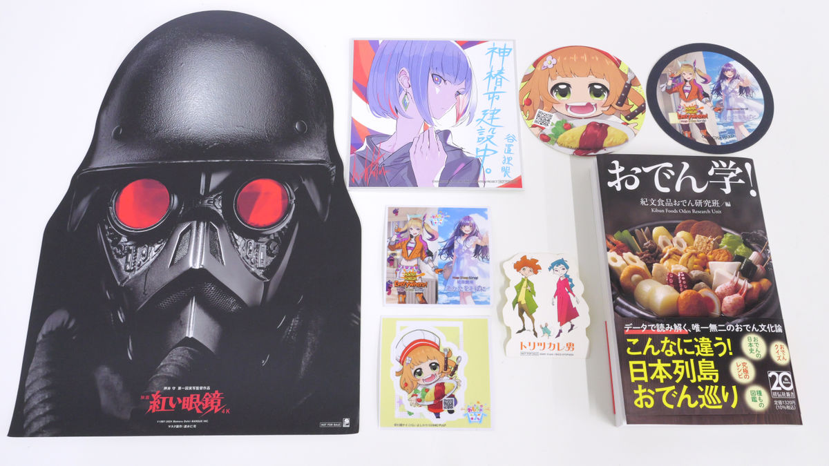 編集部員が取材で手に入れたグッズ、鑑賞した映画の入場特典など複数の品をまとめて1名様にプレゼントします。内容は以下の通りです。(1名様)