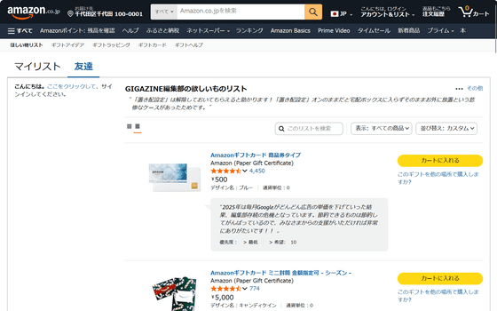 毎日記事を掲載するため全力を出してヘロヘロになっているGIGAZINE編集部のために、以下のAmazon欲しいものリストからプレゼントを贈ってもらえるとうれしいです!