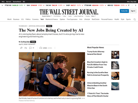 AIの発展により、「AIで代替可能な職種の失業者が増える」「新規採用が滞る」といった懸念が強まっています。一方で、「AI責任者」など新たな職種の求人が増加していることを経済誌のウォールストリートジャーナルが報じています。