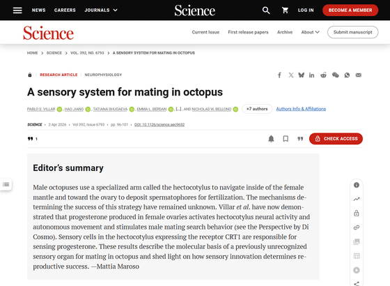 タコは地球上で最も奇妙な生物のひとつです。骨がないため体は非常に柔らかく、カメレオンのように体色を変えることが可能で、心臓が3つあり、青色の銅を主成分とする血液を持っています。そんなタコの性生活を調査した論文を、ハーバード大学の研究チームが発表し、性生活も非常に奇妙なものであることが明らかになりました。