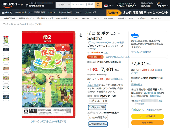 なお、「ぽこ あ ポケモン」はAmazon.co.jpで税込7801円で販売中です。