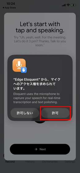 マイクへのアクセス権を求められるので「許可」をタップ。