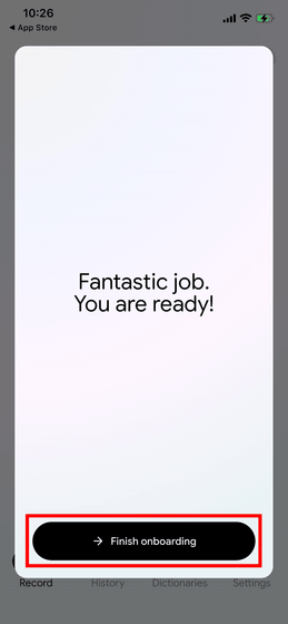これでチュートリアルは完了です。「Finish onboarding」をタップします。