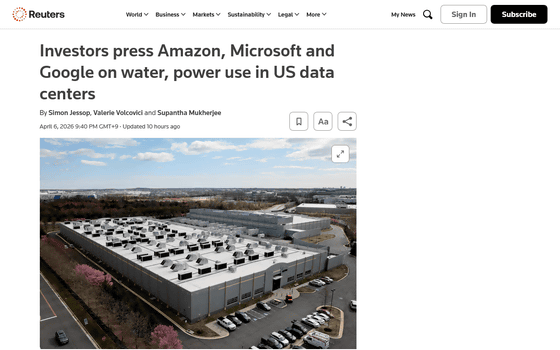 AIの急速な普及に伴ってデータセンターの消費電力や水使用量が急増する中、大手テクノロジー企業は各地に次々と新しいデータセンターを設立しています。一方で、広大な土地や多大な電力、冷却用に大量の水を必要とすることから、周辺地域への懸念や環境負荷などが問題視されています。そんな中AmazonやMicrosoft、Googleといった大手テクノロジー企業は、環境への影響を巡る情報開示について投資家から圧力を受けていることが報じられています。
