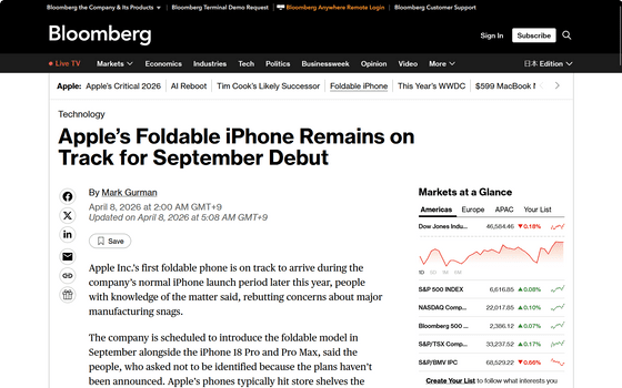 https://www.bloomberg.com/news/articles/2026-04-07/apple-s-foldable-iphone-remains-on-track-for-september-debut