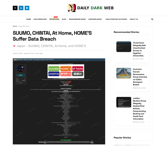 SUUMO, CHINTAI, At Home, HOME'S Suffer Data Breach - Daily Dark Web
