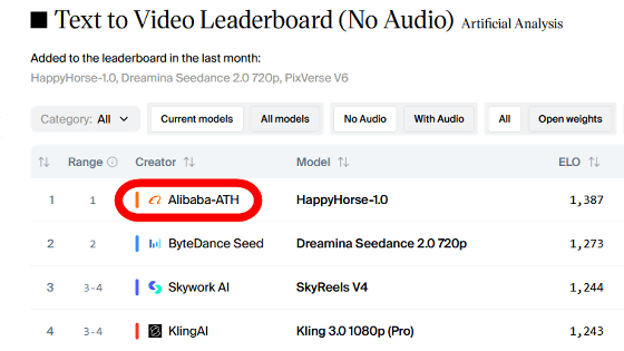 そして2026年4月10日13時過ぎにArtificial Analysisの情報が更新され、HappyHorse-1.0がAlibabaのAI事業部であるAlibaba-ATHによって開発されたものであることが明らかになりました。なお、Alibaba-ATHには動画生成AIのWanシリーズを開発したTongyi Labを含む複数のAI研究チームが属しており、Artificial Analysisがどの研究チームによって開発されたのかは明らかになっていません。