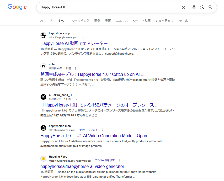 また、インターネット上には「HappyHorse-1.0の公式サイト」っぽいページが複数公開されていますが、HappyHorse-1.0とは無関係と思われるページが多いのでArtificial Analysisなどで情報が公開されるまでは会員登録などは控えた方が良さそうです。