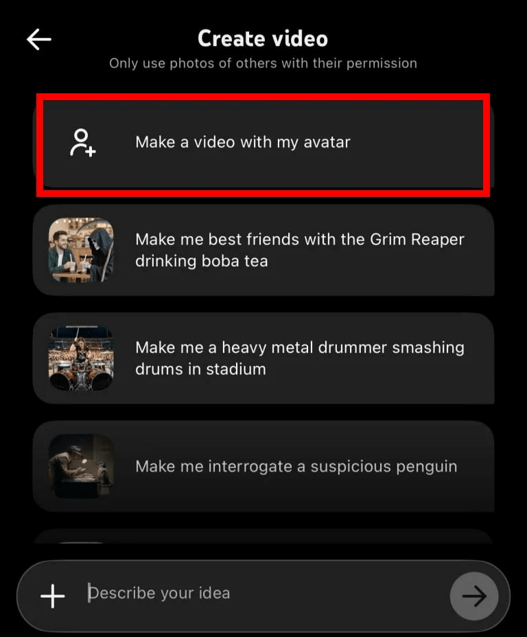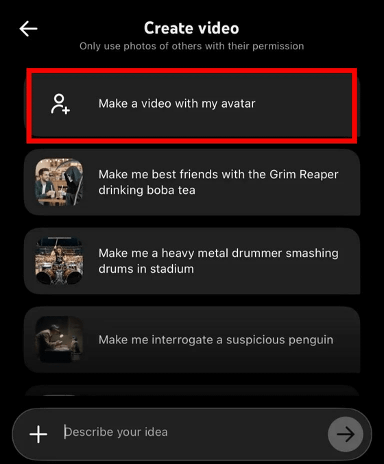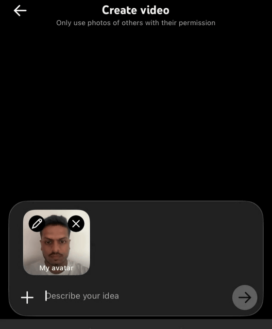 実際に試したIT系ニュースサイト・PCMagのジビン・ジョセフ氏によれば、スマートフォンのYouTubeアプリからショートを作成する時に、AI機能から「アバターで動画を作成」が可能になるとのこと。