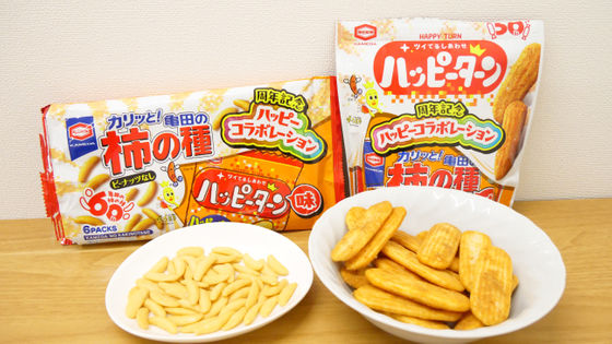 あの有名お菓子の味が入れ替わった「亀田の柿の種 ハッピーターン味」と「ハッピーターン 亀田の柿の種味」を食べてみた