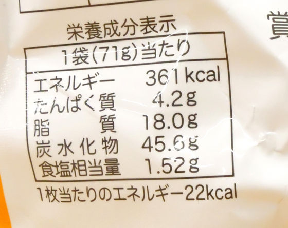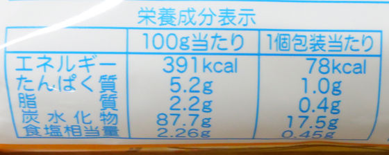 カロリーは100g当たり391kcal。1袋120gなので1袋当たりだと469.2kcalです。