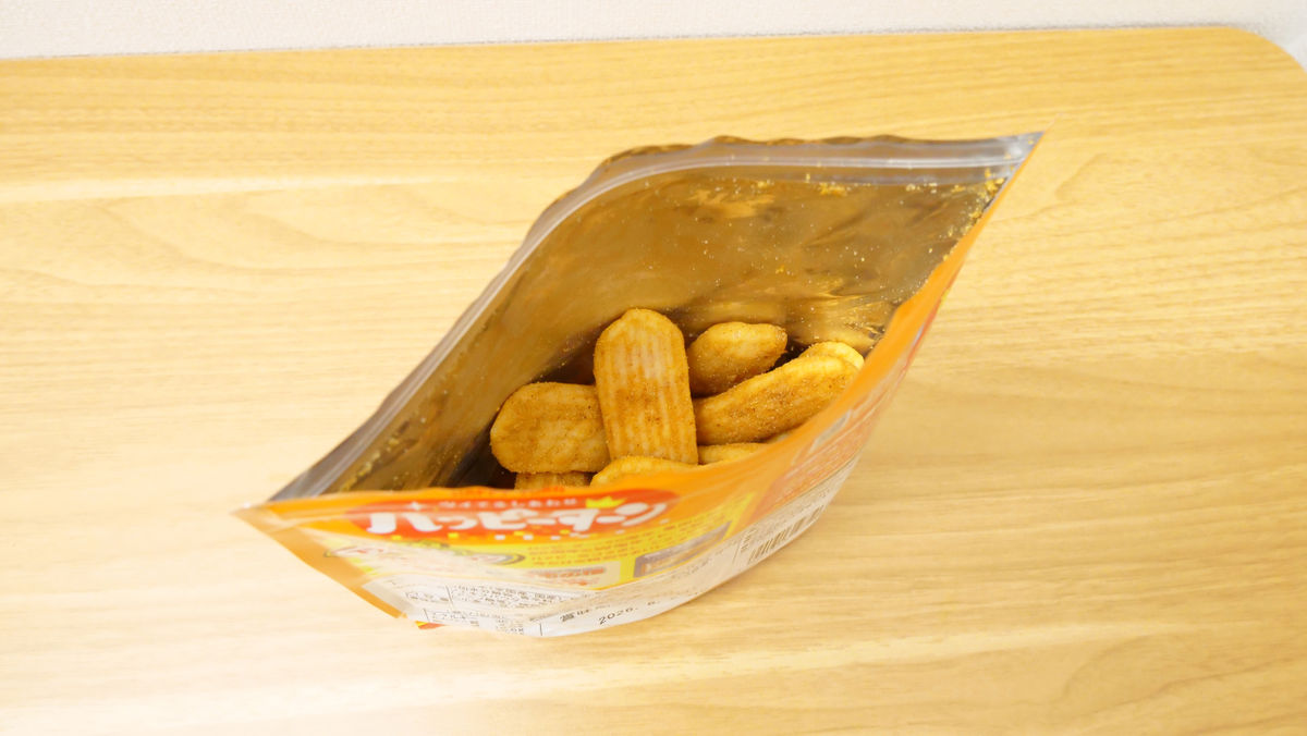 チャック付きの袋を開けるとハッピーターンがそのまま入っていました。