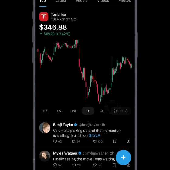Xが株式市場や仮想通貨のチャートをタイムライン上で直接見られる「Cashtags」機能を提供開始