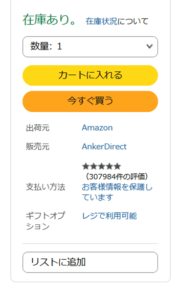 Amazonの商品ページには以下のような「カートボックス」が存在し、ユーザーはここから商品をカートに追加したり、今すぐ購入したりできます。Amazonは自社プラットフォームで競合サイトより高い価格を付けていた販売業者に対し、カートボックスの利用資格を剥奪することでその販売業者の商品を「他の出品者」欄に送るというペナルティを与えていました。Amazonはオンライン通販において支配的な地位を占めているため、カートボックスからの排除は販売業者にとって大きな痛手となります。