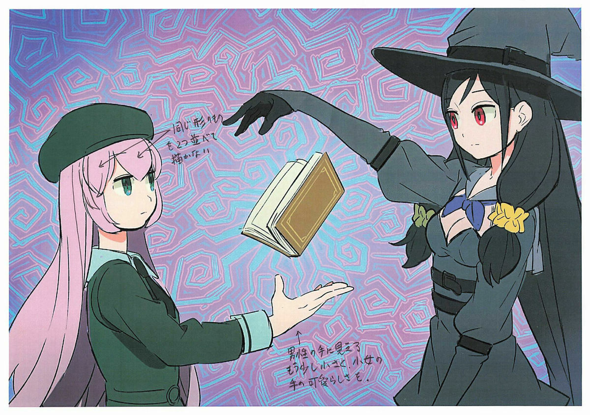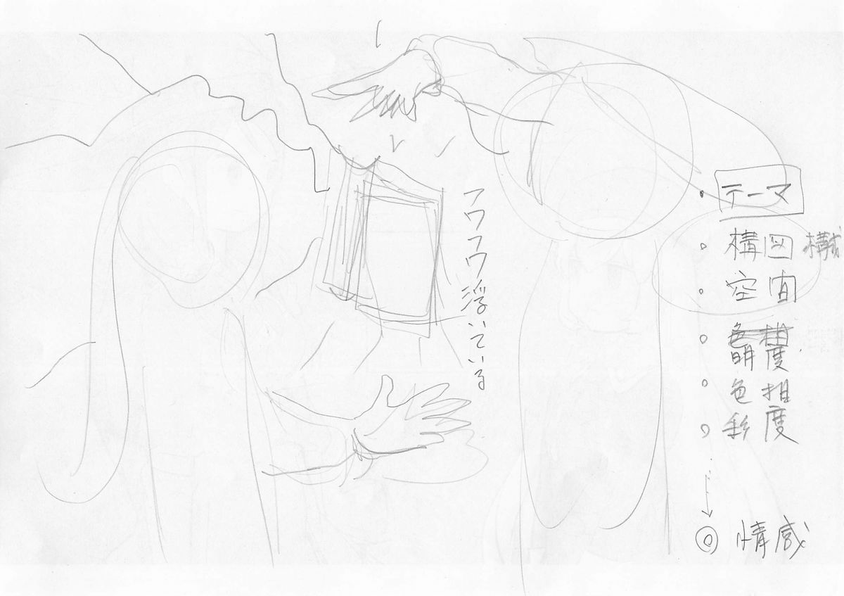 In addition, although it is well drawn, both are a little monotonous in composition, and it is necessary to devise a way to make it easier to understand if it is a “male book story” for those who do not know the work. A handmade image shows that it is a psychedelic image. As for the part where the neck of the left lacy and the belly of the right duplex are hollow, it is suggested that the magical image of the background penetrates the body and feels eroded. Based on the following images, the rough draft was created in the form of “two people facing each other a little more”.