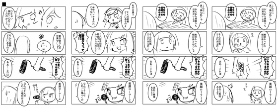 We are also considering how to put out detailed material. Taking the second page as an example, from the initial name proposal on the far left, 'I was smeared with a stray octopus', 'I actually paint my skin with a facial roller and a lie', 'I can't fall asleep on a black desk' 'Small story' such as is added. Due to the structure of 4-frame manga, the content tends to be diminished by one story per page, so the idea is devised so that you can enjoy it by increasing the concentration as much as possible.