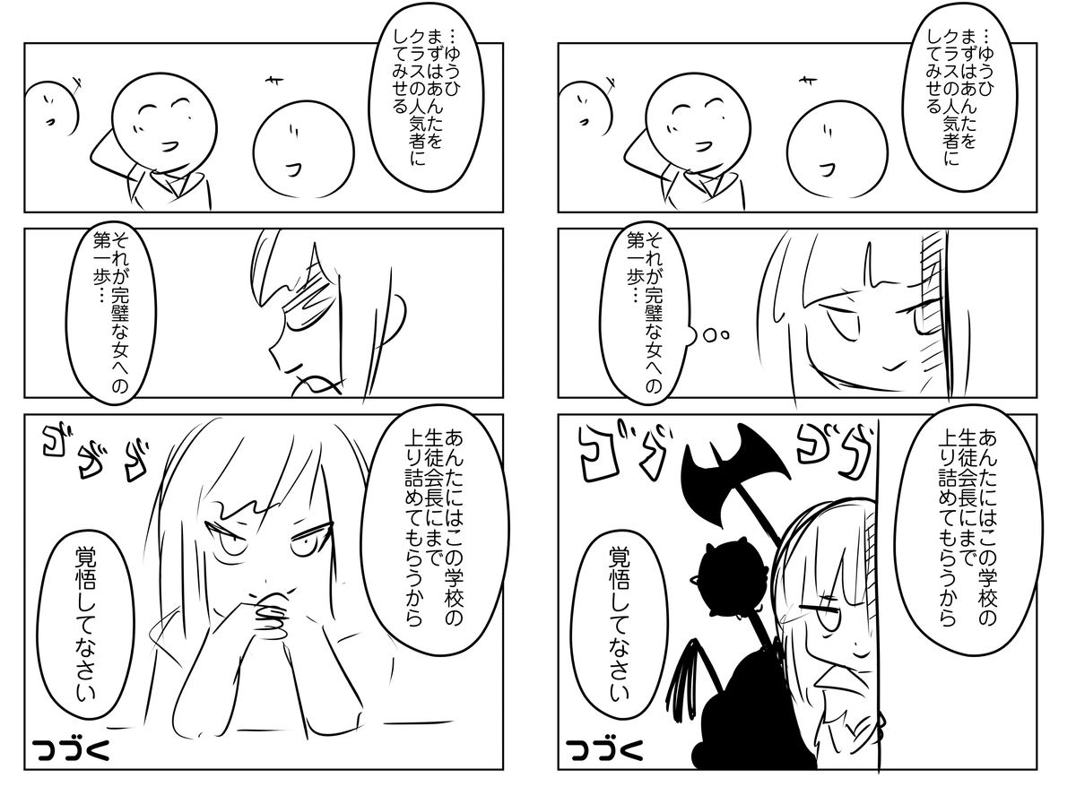 Another big change in the first episode is the scene of 'Seeding' on the 4th page. At first, the content was 'Get the teacher to praise you in the class' on the far left, but 'Isn't it too much to be praised by the whole class + teacher in the first story of the first episode?' Therefore, it was changed to a familiar level of excitement.