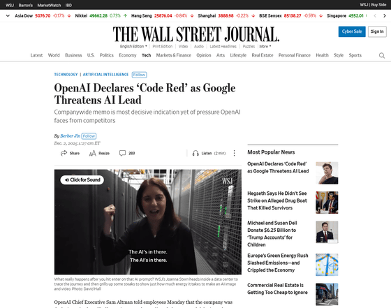 OpenAI Declares 'Code Red' as Google Threatens AI Lead - WSJ