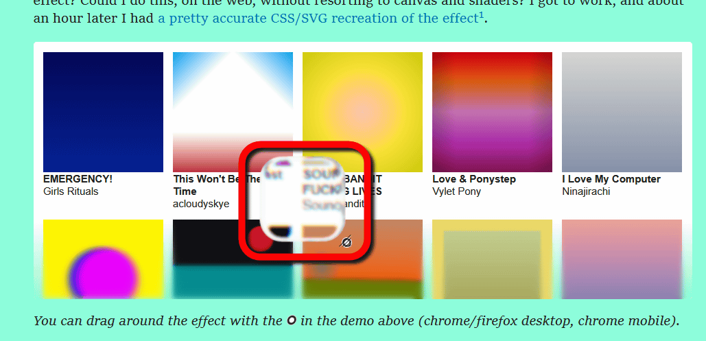 Rebane has posted a demo of the effect he created on his blog, and in the screenshot below you can see that it does indeed replicate the glassy effect of Liquid Glass.