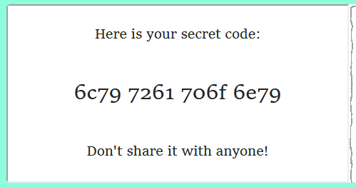 To get a rough idea of clickjacking using SVG filters, Rebane uses the example of an attack in which a user is tricked into entering a secret code into a form prepared by an attacker. For example, on the original website, the secret code is displayed along with a warning such as 'Here is your secret code:' and 'Don't share it with anyone!'