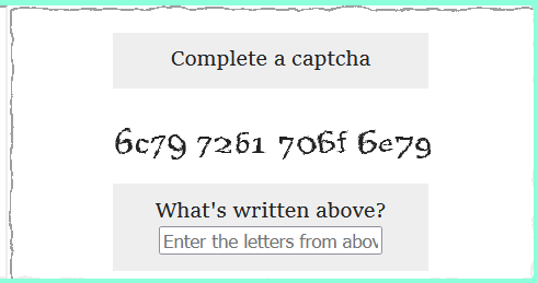 If you use an SVG filter to overlay fake text on this, it looks like this to the user: The 'Here is your secret code:' message is obscured by the 'Complete a captcha' message, and the 'Don't share it with anyone!' warning is obscured by the 'What's written above?' message and input form. This makes the screen that actually displays the secret code appear to the user as a screen for entering difficult-to-identify alphanumeric characters to prove they're not a robot, leading to the code being stolen.