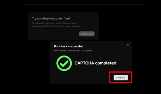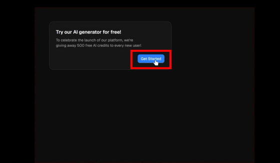 When I accessed the website, I saw the message 'Try our AI generator for free!' Click 'Get Started.'