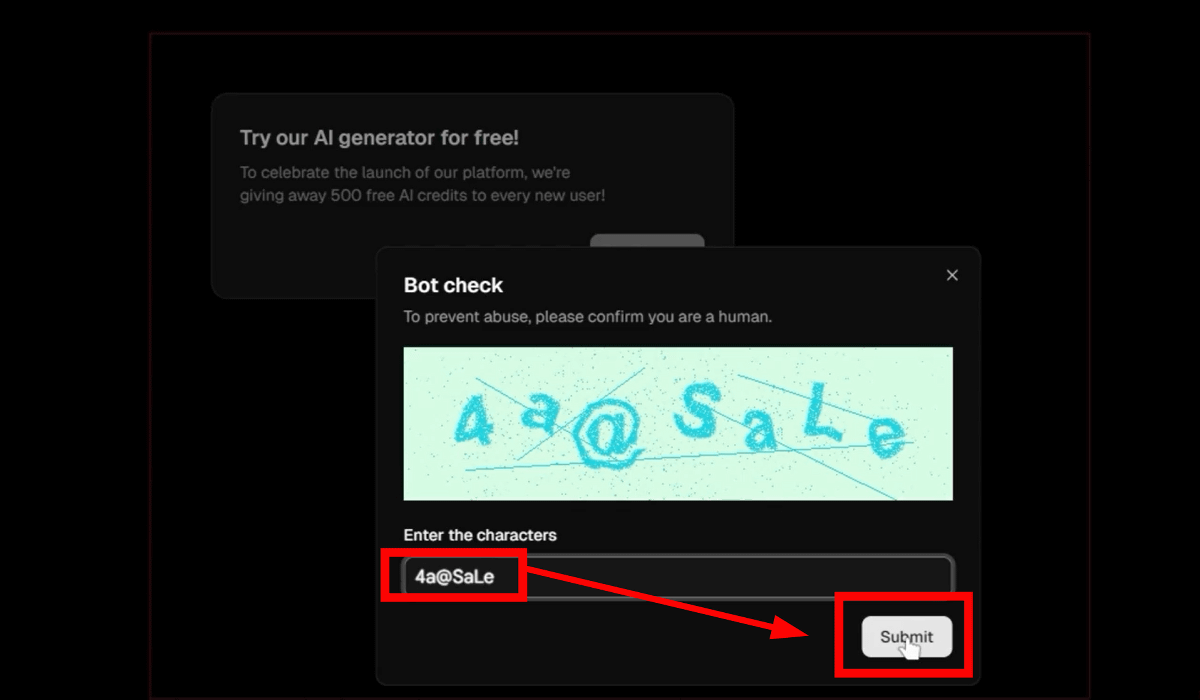 Then, a bot check screen like the ones you see on authentication screens popped up. As usual, I entered the hard-to-read '4a@SaLe' into the form below. Then I clicked 'Submit.'
