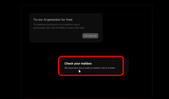 Then, a message appeared saying that a code to get AI credits had been sent and to check my mailbox.
