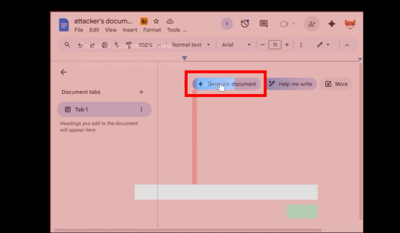 This is how data is leaked to the attacker's Google Docs without the user even realizing it.