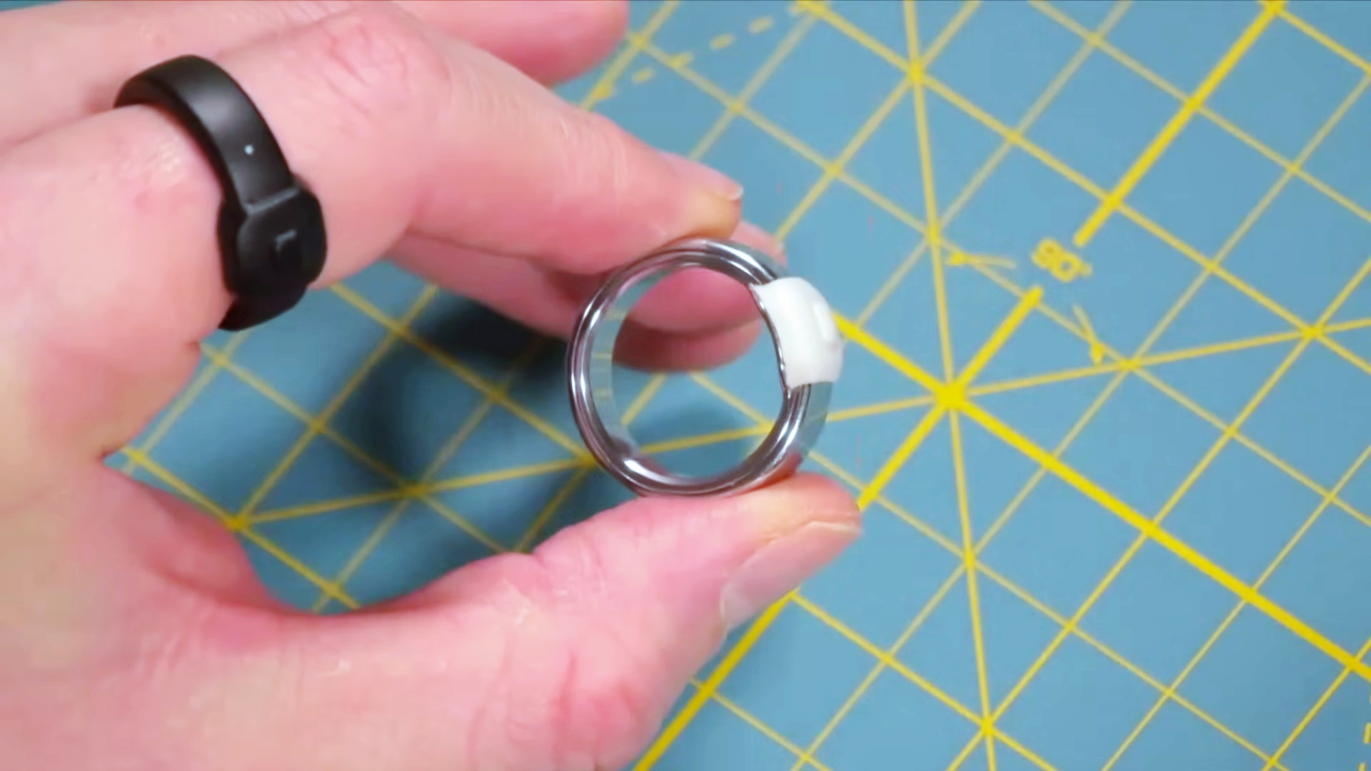 Its biggest feature is that it doesn't require charging. It has a built-in silver oxide battery that lasts for about two years if used 10 to 20 times a day. When the battery runs out, instead of charging it, you recycle the entire device and purchase a new ring. It is also water resistant to 1 meter, so it can withstand hand washing and showering, but swimming is not recommended.