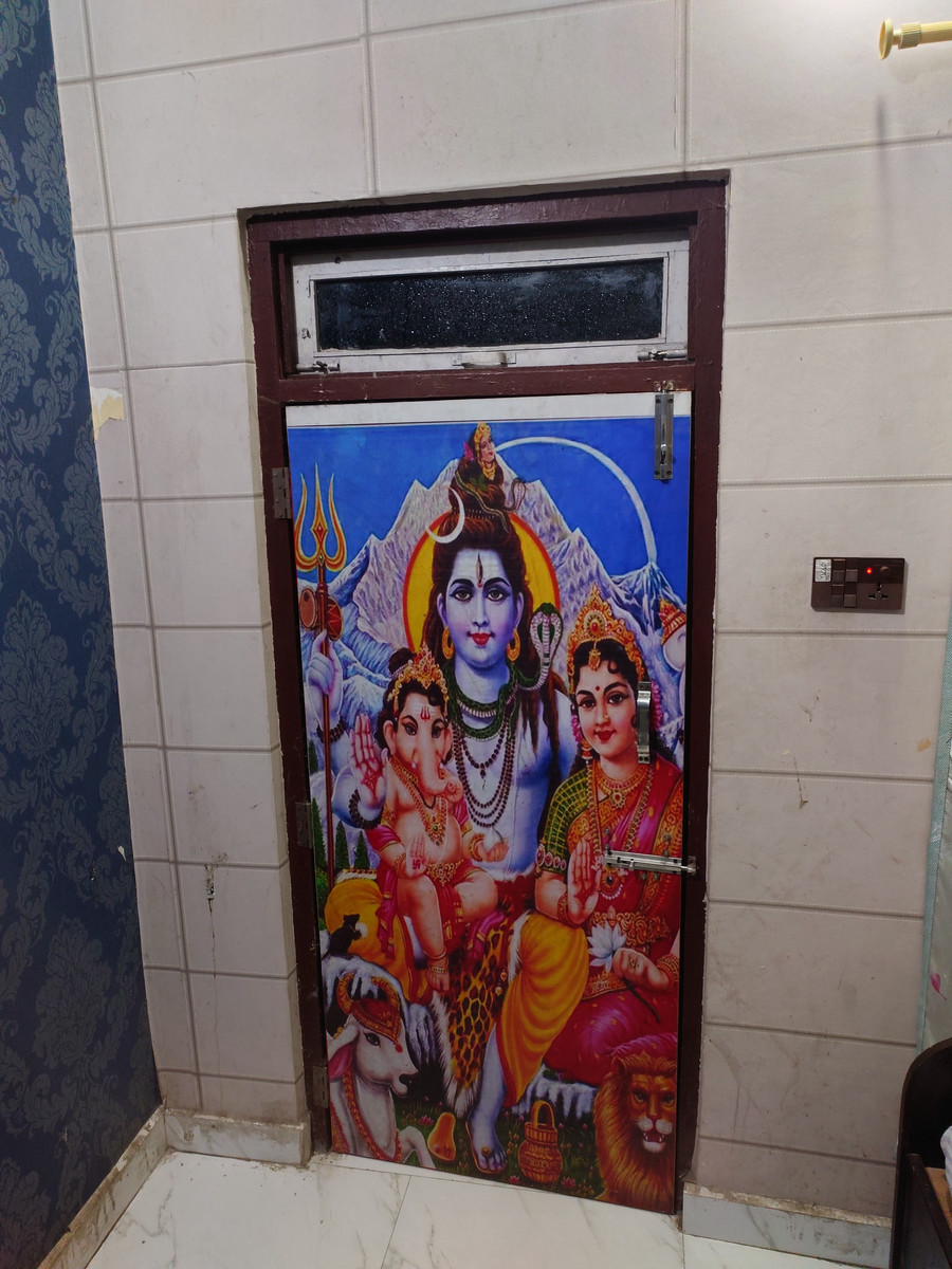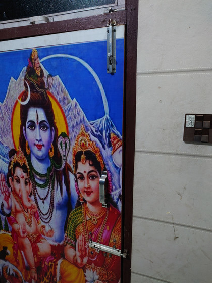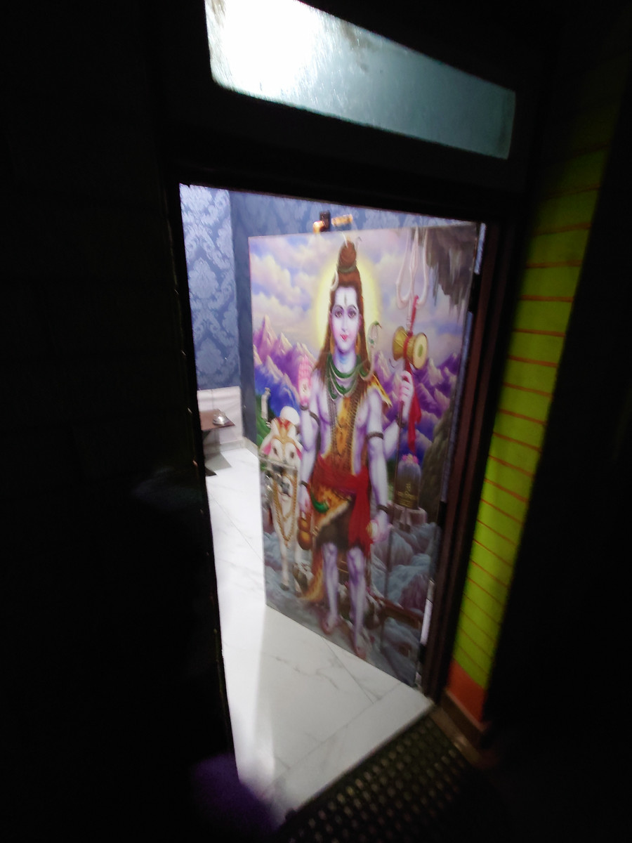 They opened the door and turned on the light, and I finally noticed that there was a picture of Shiva on the door.