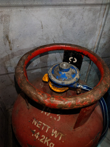 To use hot water in the shower, you simply turn the yellow knob on the gas cylinder to release the gas, then turn on the hot water faucet. The water is directly connected to the water heater, and the temperature is around 50 degrees, so you need to mix it with water to the right degree. If you let out too much water, the water heater will shut off, so you couldn't take a strong shower. Towels are not provided, so you'll need to bring your own.