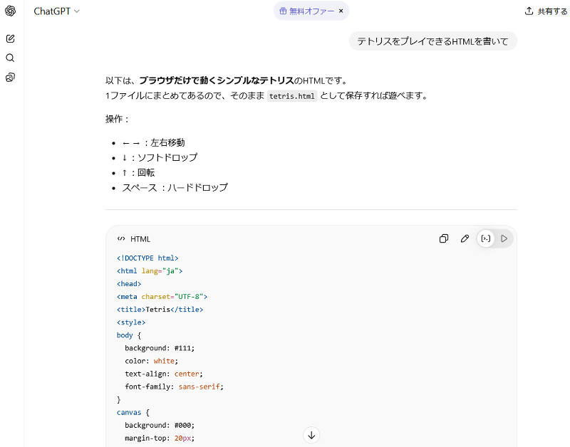 ChatGPT has been updated, allowing you to preview the generated game and edit the code within the ChatGPT interface. This feature has already been rolled out to free users in Japan, so I tried it out.