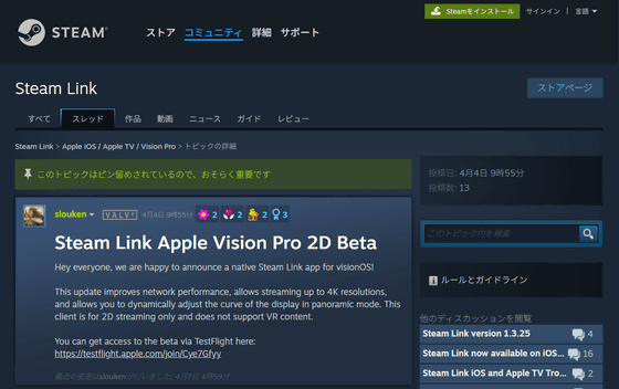 Sam Lantinga , an employee of Valve, the developer and operator of Steam, has announced a native Steam Link app for Apple Vision Pro. The Steam Link app is in beta at the time of writing, but it can be installed via TestFlight.