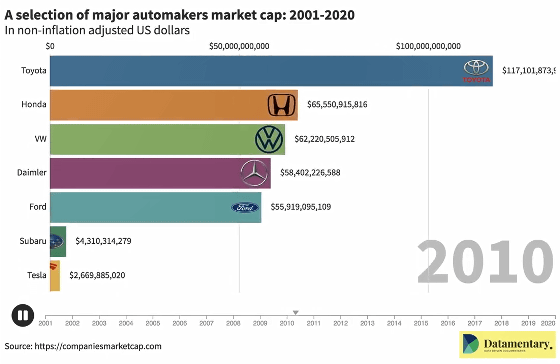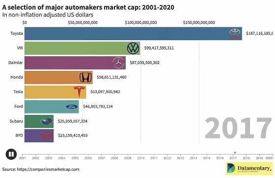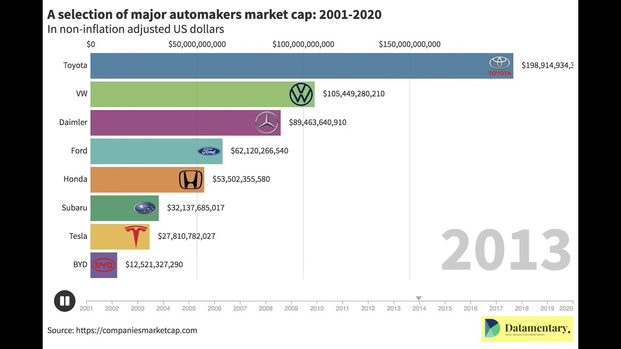 Market cap of some of the world's largest automakers: 2001-2020 (aka the coming of the electric car) - YouTube