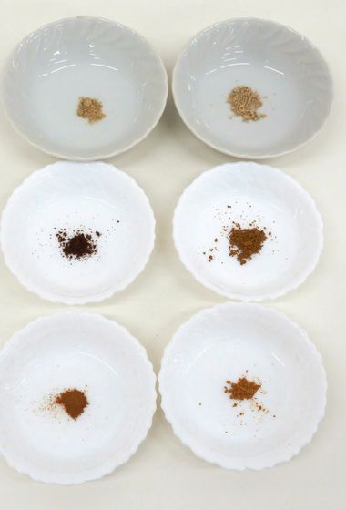 同じスパイス同士で見比べると、シナモン(下)やクローブ(中)は色合いも微妙に異なることがわかります。